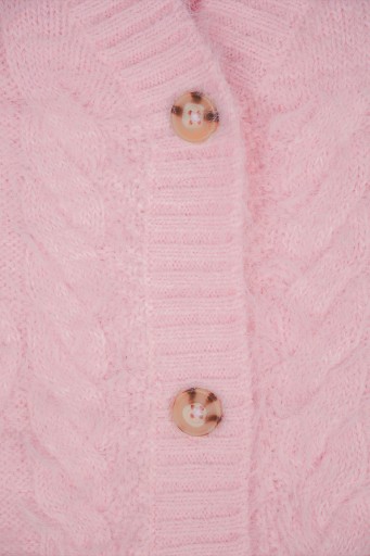 Новий кардиган брендуДжорджу відтінку пудрово-рожевого. Виготовлений з ворсистого матеріалу. Застібається спереду на кнопки. V-подібний виріз. Светр з довгими рукавами. Спереду вишукані, модні переплетення матеріалу та дві кишені.