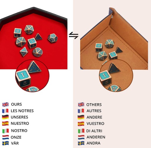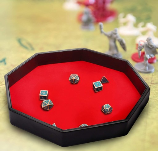 ПРАКТИЧНА ГРА: Зовнішня поверхня таці з екоскретку легко очищається та витирається. Візьміть його з собою в рюкзак на ігровий вечір, вечірку чи клуб. Він стане центром вашої ігрової кампанії, оскільки він не тільки надзвичайно функціональний, але й чудово виглядає. Його бічні стінки дозволяють контролювати кидки ігрового поля. З цим підносом можна використовувати кубики з металу, скла або дорогоцінних каменів.
