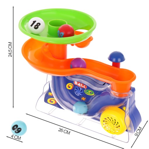 Це унікальна іграшкапоєднання крученої гірки та божевільного пускового пристрою, що гарантує вашій дитині фантастичні години розвагпоодинці або в групі однолітків чи братів і сестер. Дитина може кидати м'ячі і дивитися, як вони подорожують.