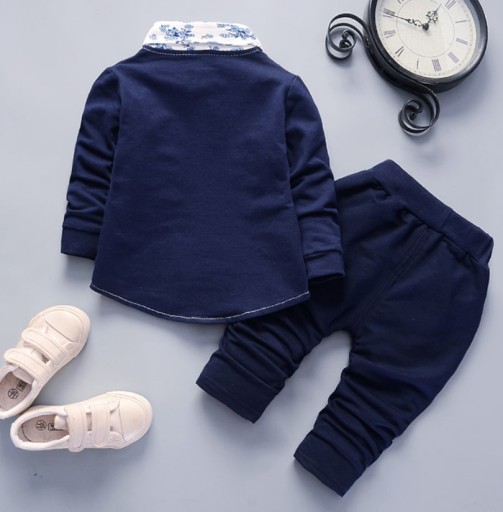 - Комплект-двійка для маленького джентльмена, що складається з брюк, сорочки в поєднанні з піджаком,