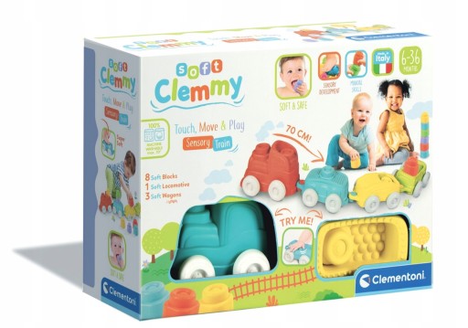 - Набір містить 12 м'яких елементів: 8 м'яких блоків Clemmy / 1 локомотив / 3 вагони