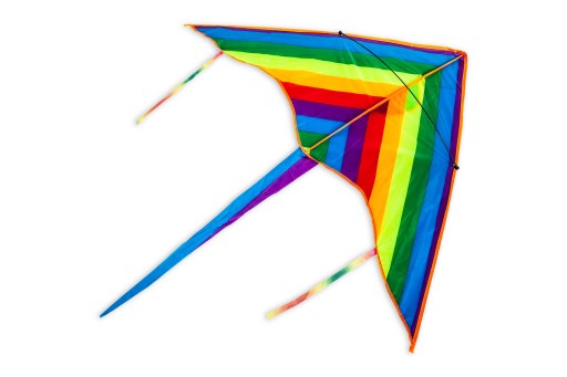 Гарний різнокольоровий повітряний змій у формі трикутника. Виготовлений з нейлону.