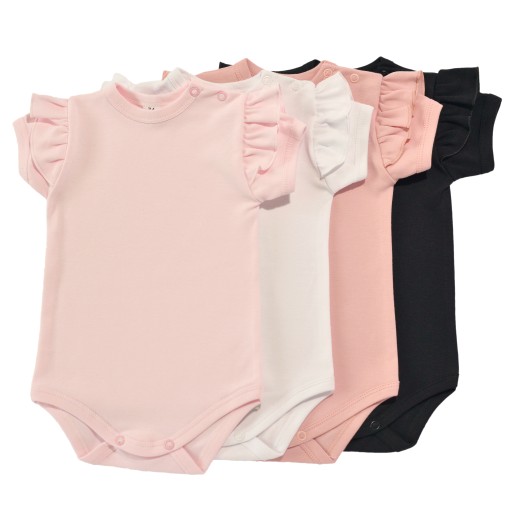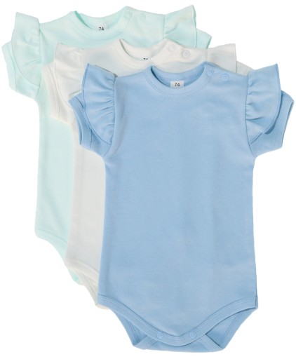 Класичне, зручне і практичне боді з короткими рукавами і воланами на плечах, виготовлене з високоякісної бавовни, сертифікованої Oeko-Tex Standard 100. Надійний текстиль.