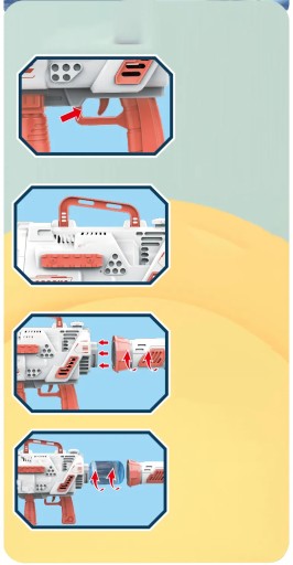 - Простий у використанні навіть для маленьких, просто натисніть на курок і насолоджуйтесь барвистими та багатими бульбашками.