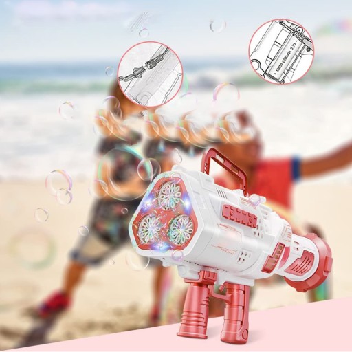 - Бульбашковий пістолет на 30 отворів із різнокольоровим світлом, що створює мрійливий і прохолодний ефект бульбашок уночі.