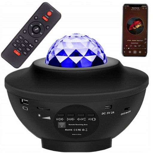 проектор є ідеальним пристроєм длядискотеки, клуби, паби, спеціальні заходиа також вдома як приліжковий світильник для дитячої кімнати або спальні. Пристрій красиво відливає на стіні і стелісвітлові ефекти.