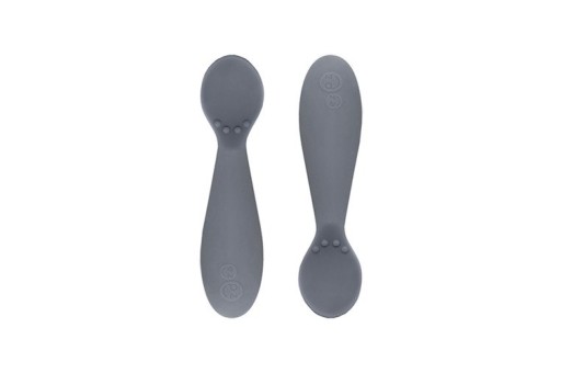 Це ідеальні ложки для того, щоб навчитися їсти самостійно. Їх вузька головка оптимального розміру і абсолютно безпечна для ніжних зубів малюка, м'який матеріал захищає прорізуються зубки, а легкий вигин допомагає навчитися змикати губи. Чотири силіконові виступи на внутрішньому краю, які сенсорно стимулюють рот дитини та ясна/зуби, запобігають протіканню. Відповідно коротка, товста, заокруглена та протиковзка ручка ложки була спрофільована так, що її зручно тримати маленькими ручками. Додатковий виступ внизу ручки стабілізує хомут.