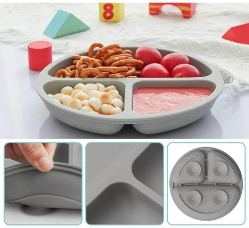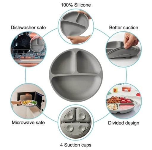 Фантастичне рішення, ось вонодуже практичнийплита виготовлена зхарчовий силікон. його використанняусуває ризикупускати тарілку з вечерею, як це буває зі звичайним посудом.Кориснийвдома та в дорозі. Ідеально підходить для навчання дитиниїсти сам.