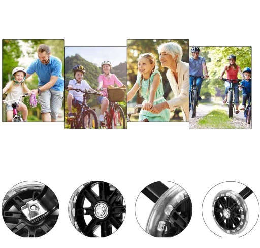 - Навчальні колеса світяться під час водіння, роблячи вашу дитину більш помітною та безпечною вночі чи в темряві. Крім того, крутий дизайн підсвічування зацікавить дітей навчатися їзді на велосипеді.