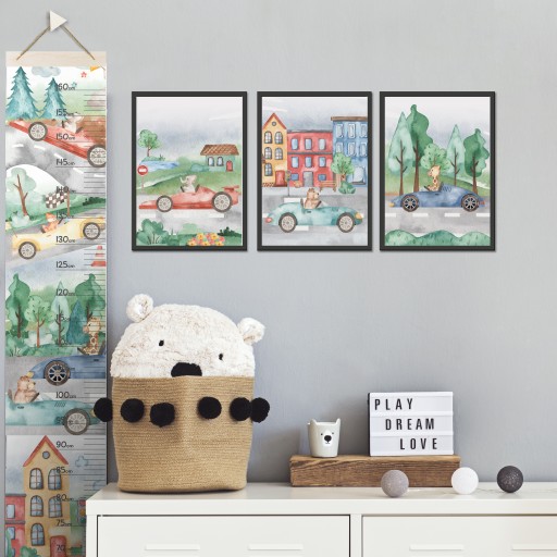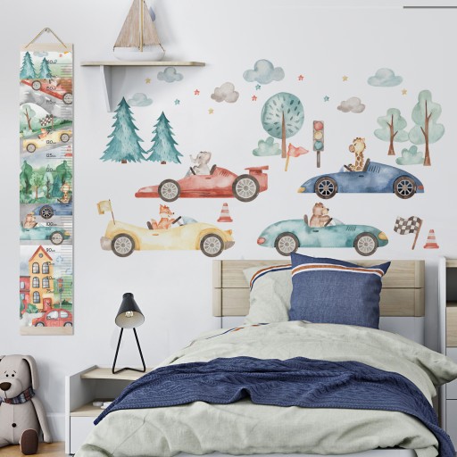 Таблиця зростання з мотивом тварин на спортивних автомобілях стане чудовою прикрасою кімнати як молодших, так і старших шанувальників автомобілю.
