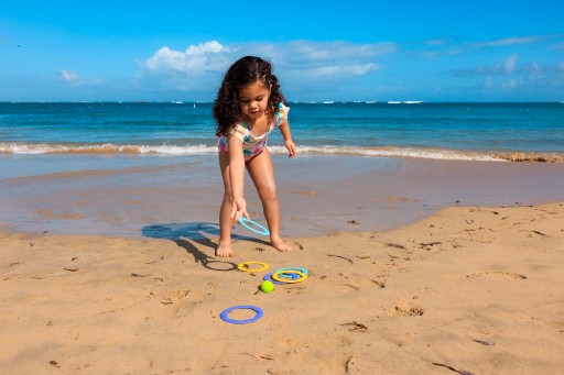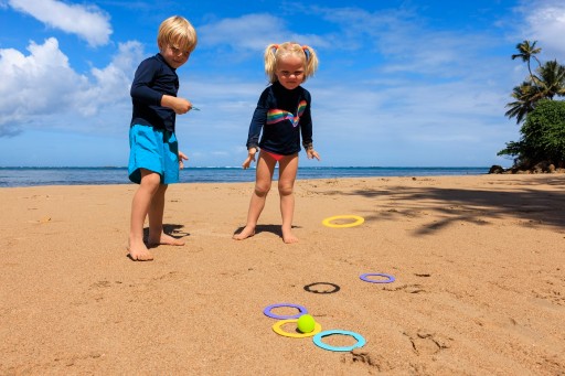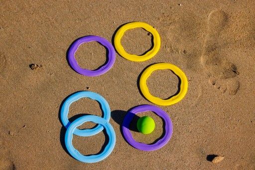 Розкладіть різнокольорові кільця на підлозі (або у воді!) і спробуйте потрапити м'ячем у середину них! Це спрацювало? Чудово! Тепер покладіть м'яч в одне місце і кидайте в нього кільця! Або побудуйте на піску доріжку для м'ячів, або запустіть на воду круглі «кораблики»...