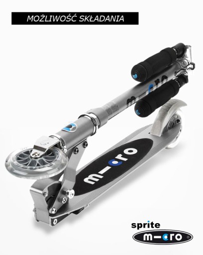 Самокат Micro Sprite можна дуже легко скласти - все за допомогою однієї кнопки. Крім того, складні ручки означають, що складений самокат займає дуже мало місця - ви можете легко сховати його в шафці в спортзалі або під стільцем на роботі чи в школі.