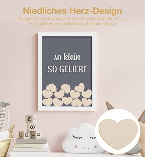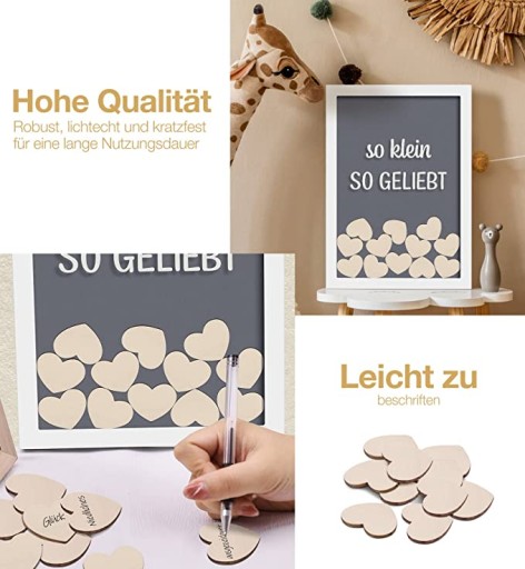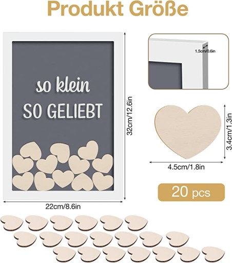PAPERKIDDO Гостьова книга Дерев'яна рамка Baby Shower Decoration Baby Shower Decoration Birthday Weights Фоторамка Подарунок на хрестини для дівчаток і хлопчиків (серце)
