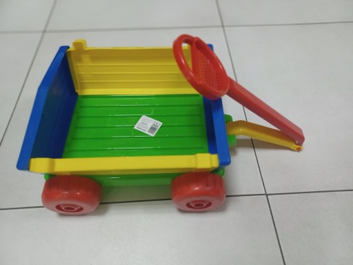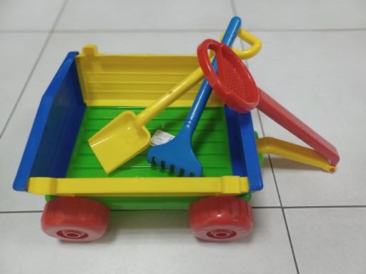 Додаткове оснащення візка - лопата і граблі, а в знімній ручці є ситечко для піску.