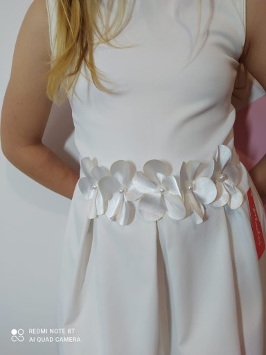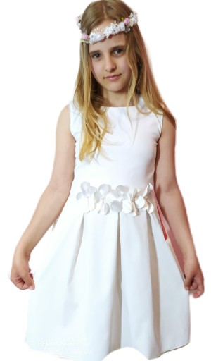 Сукня для причастя, виготовлена на польській фабриці. Високоякісні матеріали, обробка з увагою до деталей, виконана на дуже високому рівні. Модель сукні на талії з красивими вшитими атласними квітами. Сукні, які ми продаємо, дуже хорошої якості. .