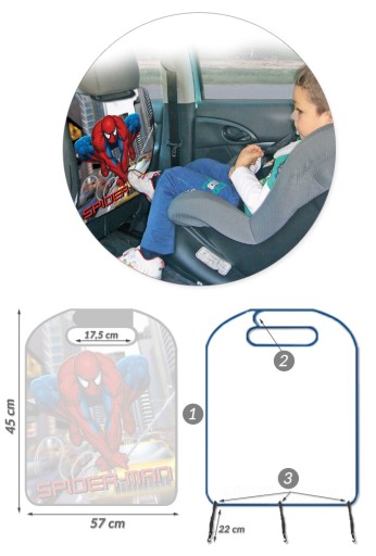 Чохол захищає спинку сидіння, а барвистий мотив з улюбленими казковими героями робить поїздку дитини приємнішою.