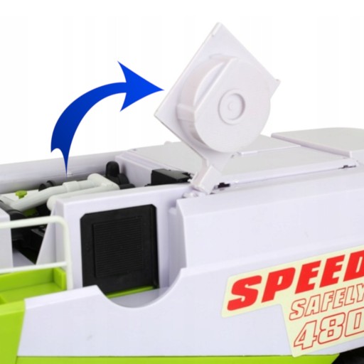 Комбайн має можливість засипати в зерновий бункер, наприклад, рис або крупу, щоб дитина могла під час гри імітувати викид соломи за комбайном у вигляді розсипаного зерна.