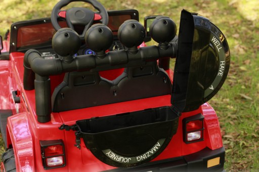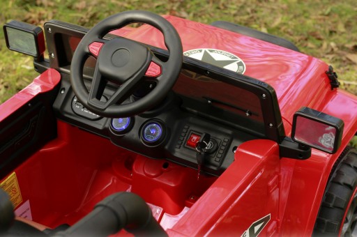Це добре обладнаний автомобіль з живленням від батареї. Він приводиться в рух чотирма потужними електродвигунами, що працюють від акумулятора. Безпечне навчання водінню забезпечує дистанційне керування 2.4G, що входить у комплект, що дає батькам повний контроль над автомобілем.
