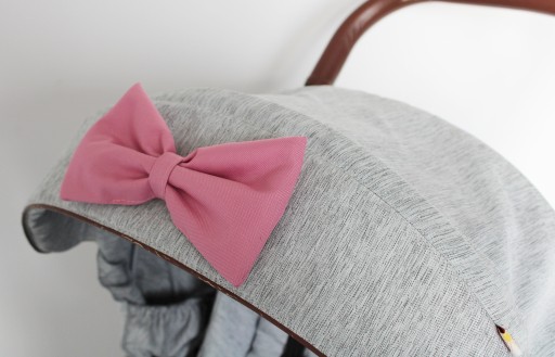 Чудовий бантик, який можна прикріпити до коляски, наприклад, гондоли або коляски. Виготовлений з водонепроникного матеріалу, він не забруднюється, міцний і зберігає гарний колір. До кожної дужки ми додаємо шпильку, завдяки якій ви можете прикріпити дужку до різних матеріалів, а не тільки до коляски. Красиво він виглядає і в дитячій кімнаті, наприклад, прикріплений на бампер або балдахін, або на штору в дитячій кімнаті.