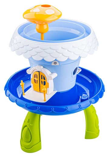 На верхній частині іграшки є гриб, який чудово полиє наші рослини. Просто налийте в нього води, щоб побачити справжній фонтан. Торець/рама верхнього горщика — це тунель, у який, наливши воду, ми побачимо подібний ефект. Вода стікає через 4 отвори і зрошує нижній рівень.