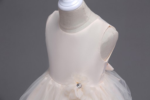 - Красиве плаття для молодих дівчат для великого чи маленького свята. Сукня розрізана по талії та прикрашена тонкими квіточками в колір сукні. Розкльошений низ із красиво скомпонованими рухами. Ніжні смужки оброблені по краях.