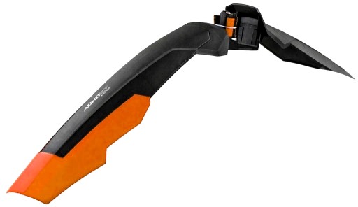 Переднє крило ADHD Long Front — це сучасна розділена конструкція, яка дозволяє незалежно встановлювати передню або задню частину бризковика. Швидкий монтаж і зручне використання можливі завдяки адаптеру SPEEDclick, який закручується у вал вилки. Конструкція його розширювальних елементів дозволяє встановити в діапазоні 18 - 36 мм, він також підходить для вилок 1,5. Крім того, поверхні, прилеглі до отвору, покриті гнучким матеріалом для запобігання ковзанню в отворі. У конструкції бризковика також використаний гнучкий матеріал, який зменшує його вагу та надає унікального візуального ефекту. Світловідбивачі можуть врятувати життя!!! Відповідно до цього слогану, бризковики оснащені світловідбиваючим елементом, призначеним для підвищення видимості та безпеки велосипедиста.