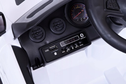 Транспортний засіб призначений для використання на вулиці. Автомобілем можна керувати за допомогою пульта дистанційного керування або дитина може робити це самостійно за допомогою педалі газу, керма та коробки передач. Ви також можете керувати музикою з приладової панелі та керма, сидячи в автомобілі.