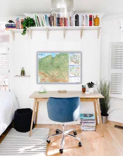 Польща – Фізична карта Польщі в масштабі 1:1 500 000 має дуже багатий і детальний зміст: кордони воєводств, міста, великі села, мережа сучасних доріг і залізниць, річки та озера, скульптура, представлена гіпсометричним методом. Поряд з основною картою на дошці є цікаві додаткові карти, які показують культурні та природні багатства Польщі.