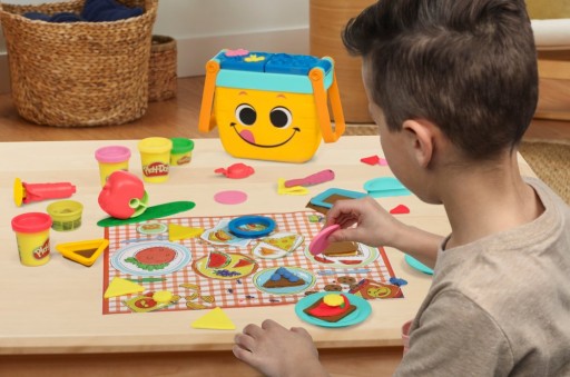 Зручний кошик для пікніка можна відкривати та закривати, щоб зберігати туби Play Doh та інструменти.