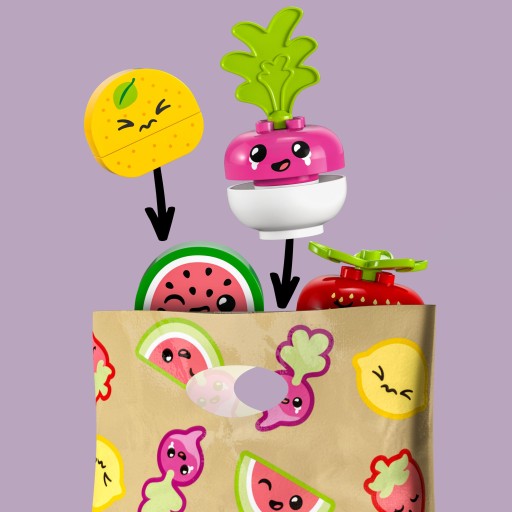 Діти можуть дізнатися про рівновагу, розставляючи іграшки з редиски, полуниці, лимона та кавуна. Усі набори LEGO DUPLO розроблено з думкою про самовираження, і кожен набір має різний образ, щоб спонукати дітей до творчих ігор!