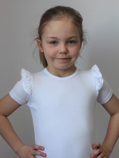 БІЛА БЛУЗКА З ОБОРОЮ, КОРОТКИЙ РУКАВ, РОЗМ. 134