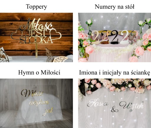 На інших аукціонах також можна знайти топпери, цифри, декоративні написи на столах, імена, тарілки з гімном про кохання, декоративні каблучки на стіни та багато іншого. Виготовляється з наступних матеріалів:
