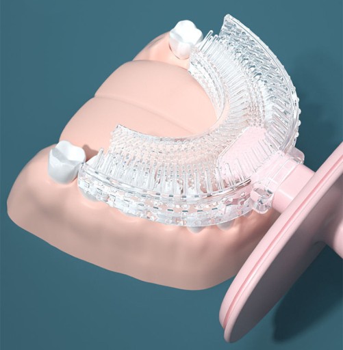 Ергономічна U-подібна насадка для щітки підходить до форми та механізму дитячих зубів.