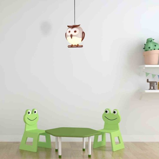 Модель OWL 243 - оригінальний підвісний світильник, який ідеально підійде для дитячої кімнати. Сферичний світильник у формі сови, що сидить на гілці, порадує любителів маленьких тварин. Нейтральні відтінки коричневого і бежевого відмінно поєднуються з аксесуарами, витриманими в подібних тонах. Світильник можна комбінувати з іншими моделями з колекції OWL.
