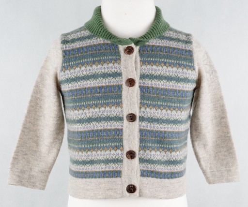 красивий светр сірого кольору меланж. Спереду з малюнком, застібається на гудзики. Навколо шиї комір. Вишитий логотип на рукаві