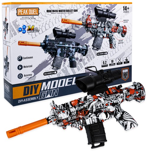 У комплект входять всі необхідні елементи. Просто підключіть батарею, використовуйте кульки, і готово! В упаковці ви знайдетедо 2000 водяних куль. Вони абсолютно безпечні, ламаються об перешкоди, тому їх можна використовувати і всередині приміщення. Окуляри, що входять до комплекту, додатково підвищать безпеку під час перестрілки.