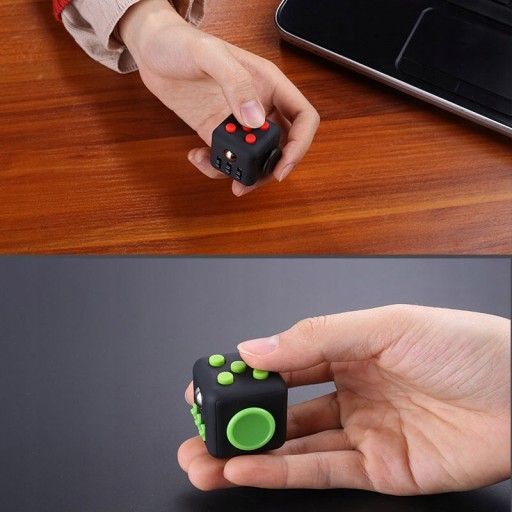 Fidget Cube — багатофункціональна іграшка для людей, які інстинктивно шукають, чим зайнятися своїми руками в стресових ситуаціях. Кожна сторона куба — це окремий гаджет — куля, що обертається, міні-джойстик, ручка, перемикач, кнопки гучного або тихого звуку.