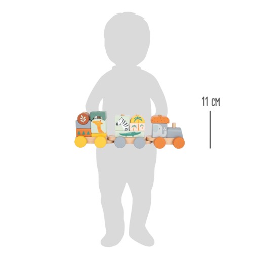 Цей милий дерев'яний поїзд призначений для дітей від 12 місяців. Поїзд складається з локомотива і двох відчіпних вагонів. І локомотив, і вагони мають рухомі колеса. На вагонах є місця для транспортування кольорових блоків, які можна скласти в будь-якій конфігурації. Ставимо блоки на виступаючі стійки, що захищає їх від падіння.