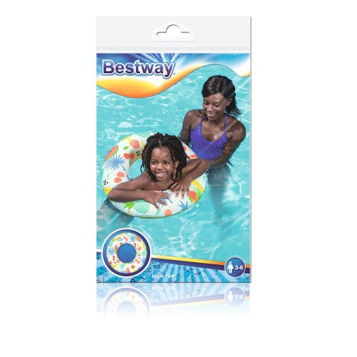 Кільце для плавання Bestway з фруктовим мотивом відмінно підійде для дітей дошкільного та молодшого шкільного віку. Міцний ПВХ матеріал призначений для багаторазового наповнення та спорожнення. Колесо необхідне, щоб допомогти плавати та грати у воді. Колеса ідеально підходять для моря чи озера, а також для басейну чи гри в саду.