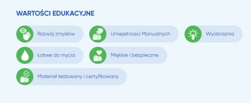 - Блоки виготовлені з високоякісного матеріалу TPE (Franplast TPE). TPE - це м'який, гнучкий, пружний матеріал з високою термічною та хімічною стійкістю. Матеріал абсолютно безпечний для дітей. Відповідає суворим вимогам європейського стандарту PN EN 71.3.
