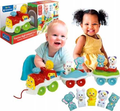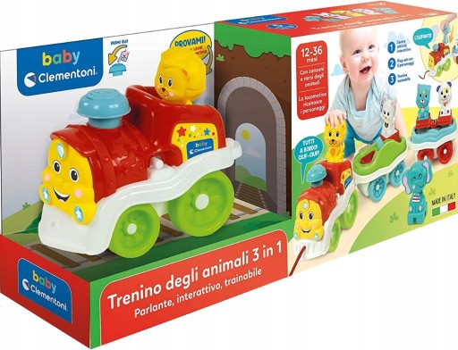 Веселий потяг для найменших із багатьма завданнями, які стимулюють уяву та сприяють розвитку ручних навичок. Дитина розміщує на паровозику п'ять тварин і, натиснувши на трубку, слухає речення, звуки тварин, звуки, віршики та веселі пісеньки. Багатий контент стимулює розвиток мовлення вашої дитини. Поїзд був розроблений і розроблений в Італії з використанням сертифікованих навчальних матеріалів і контенту, щоб забезпечити цікаву розвагу, яка розвиває і вдосконалює навички дитини. Дитина дізнається про тварин, грається з візками та тягне потяги - розвиваючи спритність рук, координацію та моторику. Чіткий зв'язок тварини з її звуком і назвою допомагає дитині відкривати і вивчати причинно-наслідкові зв'язки і таким чином стимулює когнітивний розвиток.