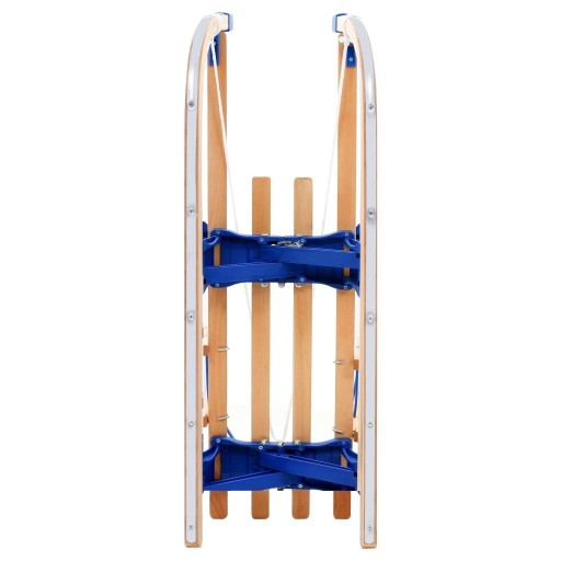 Складані дерев'яні сани зі спинкою подарують вам масу вражень цієї зими. Міцні металеві планки, що проходять по всій довжині полозів, забезпечують плавну їзду навіть на дуже крутих місцях.