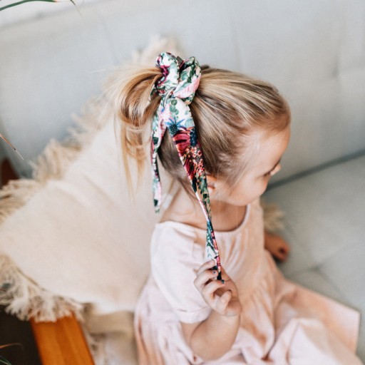Його можна носити по-різному, з красивою довгою стрічкою, що висить у волоссі, або з маленьким бантом, зав'язаним із стрічки. Ви також можете розв'язати стрічку і одягнути лише махрову тканину.