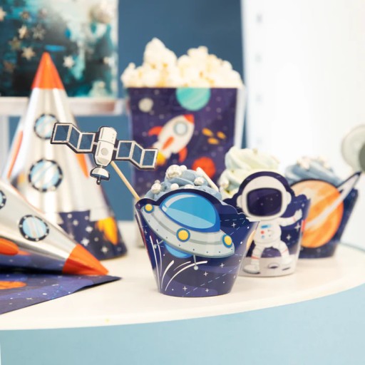 Діти люблять солодкі кекси, а ті, що прикрашені космічними малюнками на паперових обкладинках, ще більше захочуть зникнути з святкового столу. Стаканчики для мафінів – ідеальне доповнення до посуду колекції Kosmos party.
