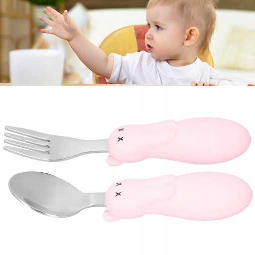 4. Набір вилка і ложка Bunny з короткою ручкою, спеціально розроблений для малюка.