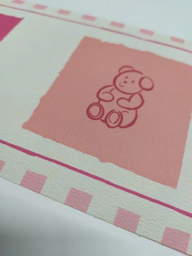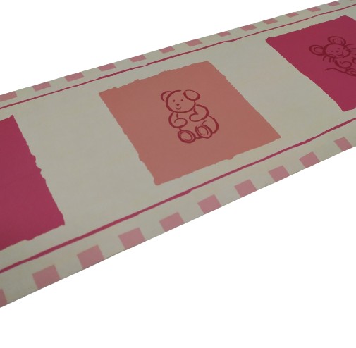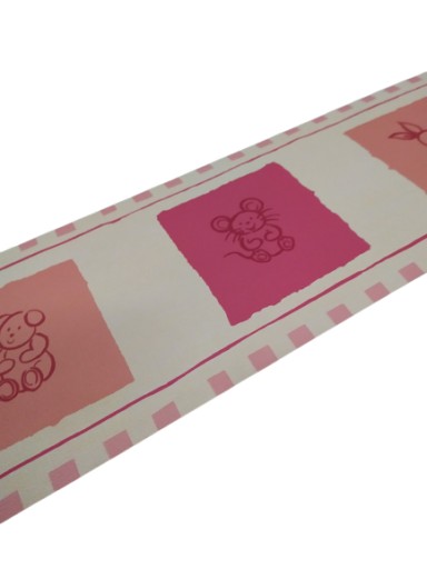 Візерунок: кошеня, ведмедик, мишка та зайчик у рожевих та опалових квадратах.