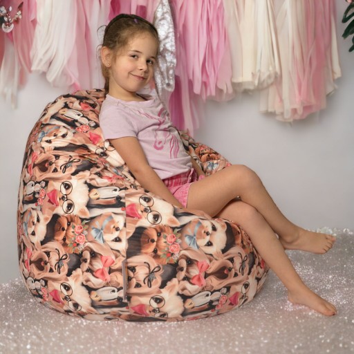 крісло та пуф на цьому аукціоні виготовлені з мікроплюшевої тканини з малюнком. Всередині гранульований пінополістирол. Зшиваємо все міцними подвійними швами. Завдяки такому пошиттю ми впевнені, що пуф прослужить довго, а вставка не розсиплеться.Його естетичні цінності та міцна конструкція обумовлені добре продуманим дизайном та використанням високоякісних матеріалів. матеріали, подвійне кріплення та подвійні шви.