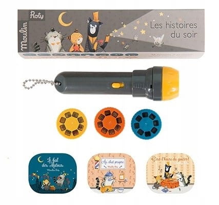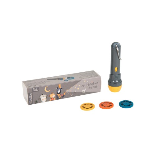 Пориньте у три різні світи з флагманським продуктом Moulin Roty. Відкрийте для себе три позачасові класичні історії. Невеликий проектор-ліхтарик, у який ми вставляємо 3 різні відео, кожне з яких розповідає окрему історію. Для проекції на стіну або стелю.