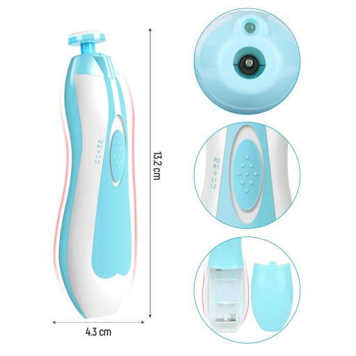 [Низький рівень шуму та світлодіодне освітлення] - Наша дитяча електрична машинка для цвяхів оснащена безшумним двигуном, тому шум під час роботи дуже низький. Вам не доведеться хвилюватися, що розбудите сплячу дитину під час стрижки нігтів. Крім того, світлодіодне світло допомагає вам освітлювати ваше оточення під час роботи.