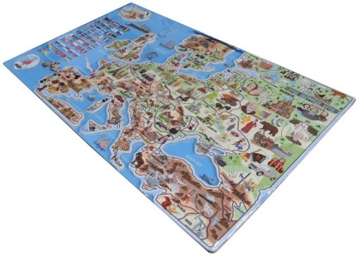Ми хочемо представити вам найбільшу магнітну карту Європи з малюнками, яку ми пропонуємо на даний момент, від відомого виробника іграшок Woody. Через гру дитина дізнається про розміри, форму та розташування окремих європейських країн. На карті зображений наш материк від далекої російської тундри, через ближньо-східні пустки до Ісландії. У кожній країні (за винятком таких країн, як Ватикан, Андорра, Ліхтенштейн, Мальта та Монако) є цікаві фотографії, пов’язані з культурою, історією чи пам’ятками певної країни. Наприклад, у Польщі ми можемо побачити відомого польського папу Івана Павла ІІ чи замок у Мальборку, а в Англії – знаменитий Стоунхендж чи червоний двоповерховий автобус. Те ж саме стосується і магнітних пазлів, де в таких країнах, як Португалія, складається з однієї деталі, а в Росії цілих 10 пазлів. Відтепер кожна дитина знатиме, з якими країнами межує Польща, чи через які країни варто проїхати, щоб потрапити на канікули в сонячну Італію.